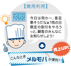 天候による割引告知(雨の日来店割引、雪の日来店割引、猛暑来店特典など)